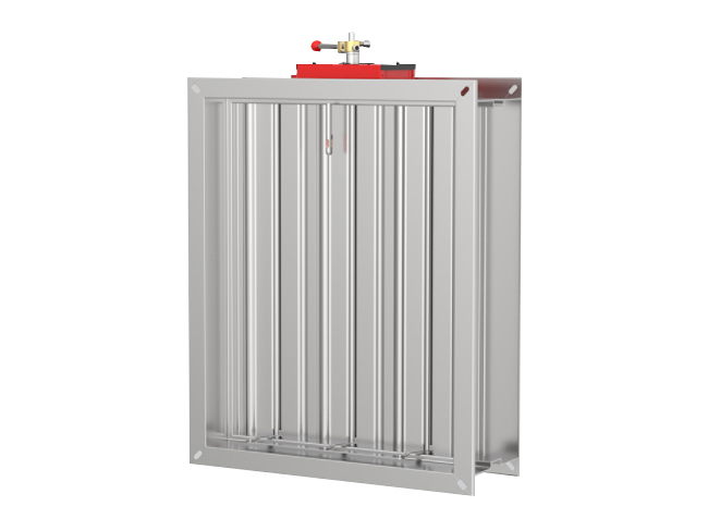 空調(diào)排風管用通風防火閥包括閥門架和閥板。閥板安裝在閥門架外側表面的頂部,閥板的表面固定安裝有熔斷桿,熔斷桿的一端固定安裝在閥門架的表面,閥門架的內(nèi)部安裝有固定裝置,用于在閥板密封的時候將其鎖緊,閥板與閥門架的表面通過合頁進行安裝,閥板與閥門架的表面垂直。